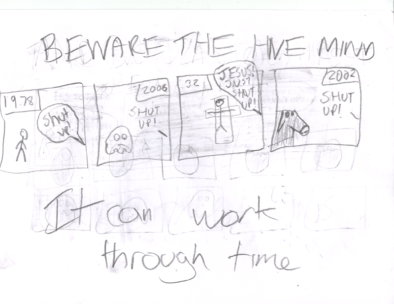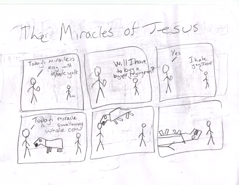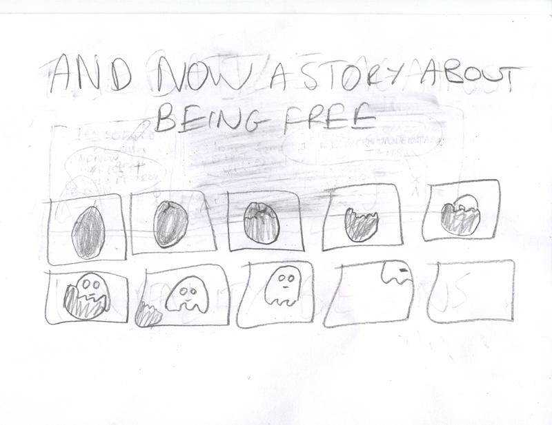 experiment was to draw comics on a sheet of paper (A4, blank) and then rub them off and draw another over the top