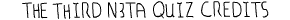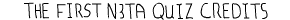 Swizpig would like to thank: That mysterious grey-haired gentleman who walks past me every day. Doesn't matter where I go. He's always there. ![]() ![]() ![]() Questions and images (useless skills) were written and drawn by Nurse David (time for your bed-bath) Homfray. Question 11 was written by Dr. Luke (I believe in the power of sexual healing) Elliott. ![]() David Guy would like to thank: Some crows,and Satan himself. ![]() David Homfray would like to thank: Anastacia for making records that have encouraged me to seek out and enjoy the beauty of silence. ITV presenter Sian Lloyd for sending me coded messages during her weather bulletins. BBC presenter Michael Fish for sending me explicit coded messages during his weather bulletins. Everyone on the n3ta forum board. ![]() Luke Elliott would like to thank: His butler Jenks for devising a cunning scheme that enabled him to escape from the clutches of Miss Daphne Spotsworth. ![]() |